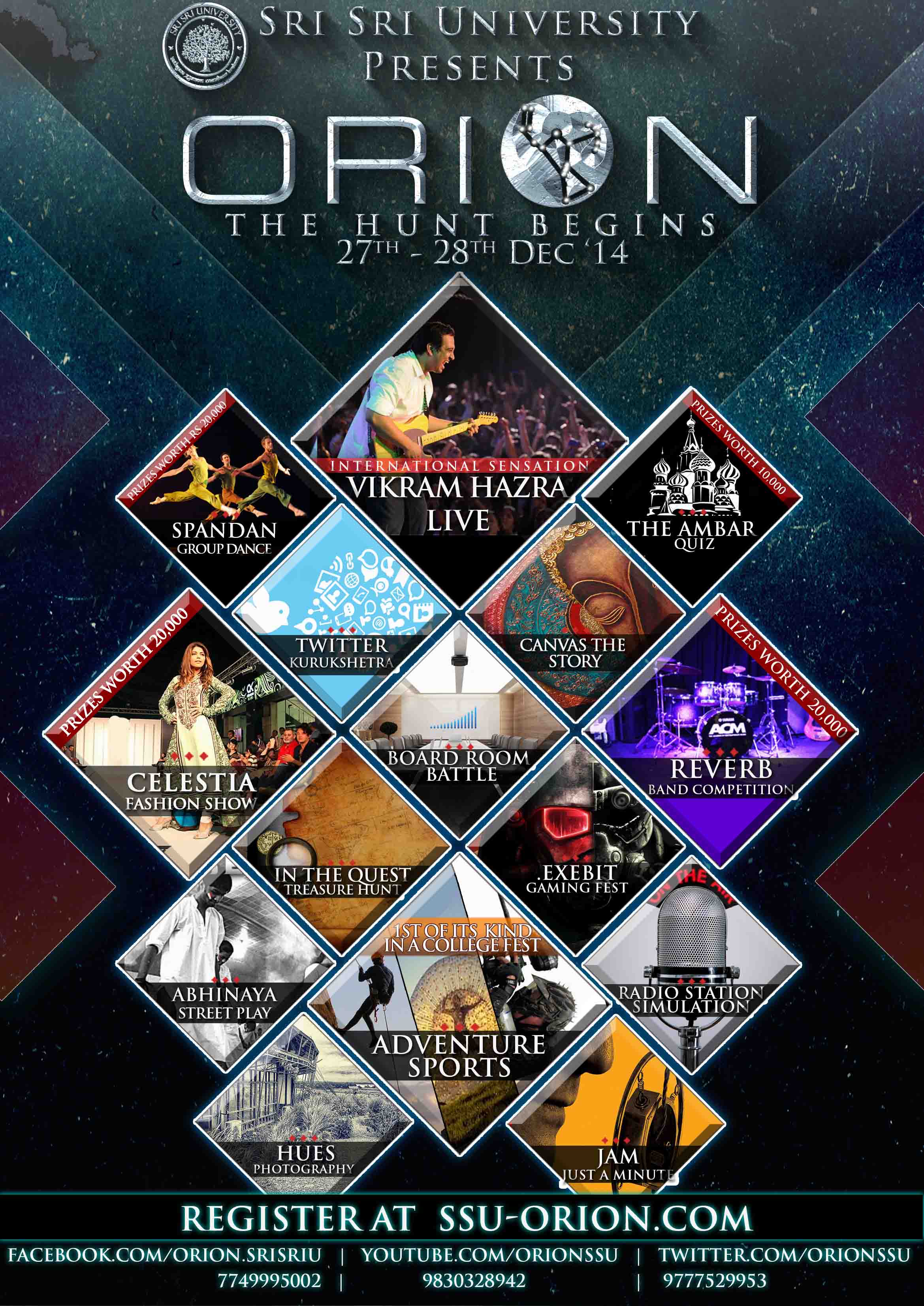 ORION ’14 endeavours to promote creative talent in the fest through a range of both online and offline competitions from dance to street plays, quiz to literary events, gaming to social media along with the innovative addition of Adventure sports and a soulful musical concert by Vikram Hazra – an international fusion vocalist and guitarist. The two-day mega event will have students from across the country participating from the Management as well as Non-Management institutes with an expected footfall over 4000 , making Sri Sri University the melting pot of cultural diversity and intellect.