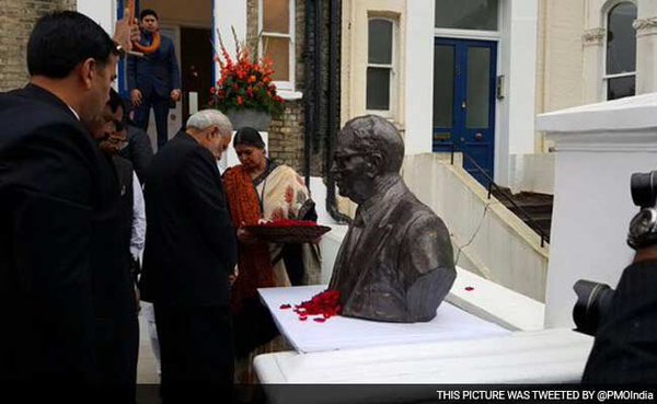 The building is located on King Henry’s Road. The six-room memorial includes an exhibition and the chair used by B.R. Ambedkar during his stay. Modi paid floral tribute at the statue of Ambedkar.