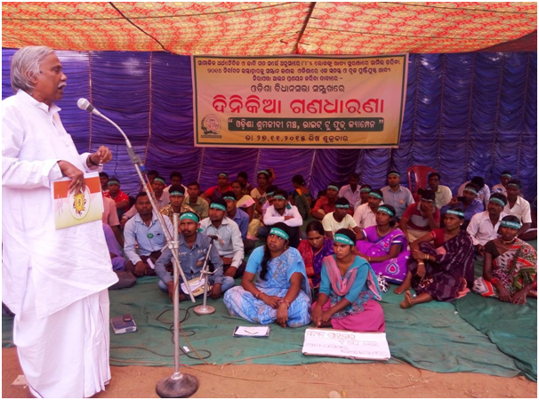 Noted journalist Rabi Dash, Panchanan Kanungo (Ex-Finance Minister, Abdul Wali (Republican Party) Sapteswar Mallik, Mangu Jhila from, Arun Prasad Dehudi of OSM and Pradip Pradhan of RFC addressed the the protest Dharana. Manohar Chauhan, Member, Campaign for Survival and Dignity(CSD), Odisha addressing the protest Dharana emphasised on the selection of eligible person/family under NFSA by the gram sabha (village council).