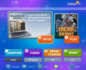Compatible on all set top boxes and available 24/7 for an affordable monthly subscription, Playin’TV is easily accessible through Channel No. 521 and doesn’t require any additional equipment apart from the existing set top box and the remote control. The portal offers a selection of 20 games split up in 4 genres.
