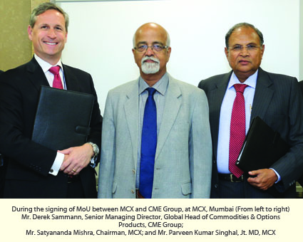 The MOU signing ceremony was held in Mumbai, Parveen Kumar Singhal, Joint Managing Director, MCX, and Derek Sammann, Senior Managing Director, Global Head of Commodities & Options Products, CME Group, were the signatories.