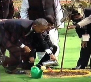 Obama, who is here on a three-day visit and has often invoked the legacy of Mahatma Gandhi and described him as an “inspirational figure”, then signed the guest book. The US president was presented a bust of Father of the Nation and seven points of his social messages. He then planted a sapling of ‘peepal’ tree in the complex of Gandhi memorial.