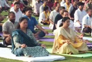 Rajasthan Chief Minister Vasundhara Raje joined thousands of people in performing yoga here to mark the International Yoga Day celebrations on Sunday.