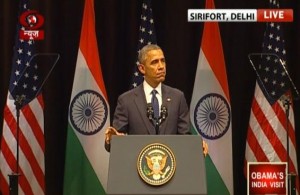 He also said he was happy to see so many women commanding contingents in the Republic Day parade and specially mentioned Wing Commander Puja Thakur who commanded the guard of honour accorded to him at Rashtrapati Bhavan Jan 25. Obama recounted how in his last visit in 2010 he had visited the Humayun’s Tomb and met the families of some labourers working there. The little son of one of them, Vishal, is today a 16-year old, he said, and added he was happy to note that Vishal today studies and dreams of joining the armed forces “an example of the talent that is here”.