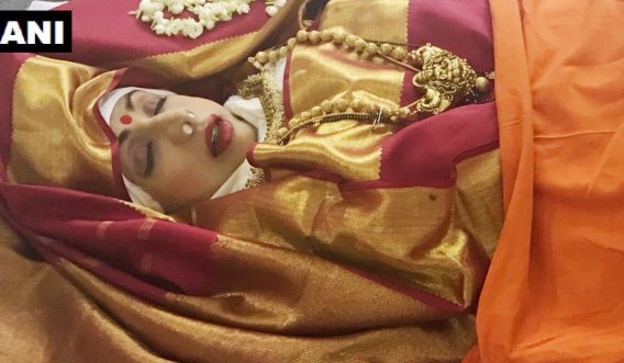 The body of late actress wrapped in tricolor and cremated with state honors.