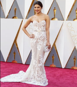 Priyanka Chopra looked stunning in an elegant white gown, a creation by Lebanese designer Zuhair Murad. Besides flaunting a perfect red carpet appearance, she exuded confidence as she presented the Oscar in the Best Film Editing category to “Mad Max: Fury Road” along with Hollywood star Liev Schreiber.