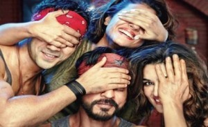 With their hands covering each other faces, the poster of the Rohit Shetty directorial shows SRK with his co-stars Kajol, Varun Dhawan and Kriti Sanon.