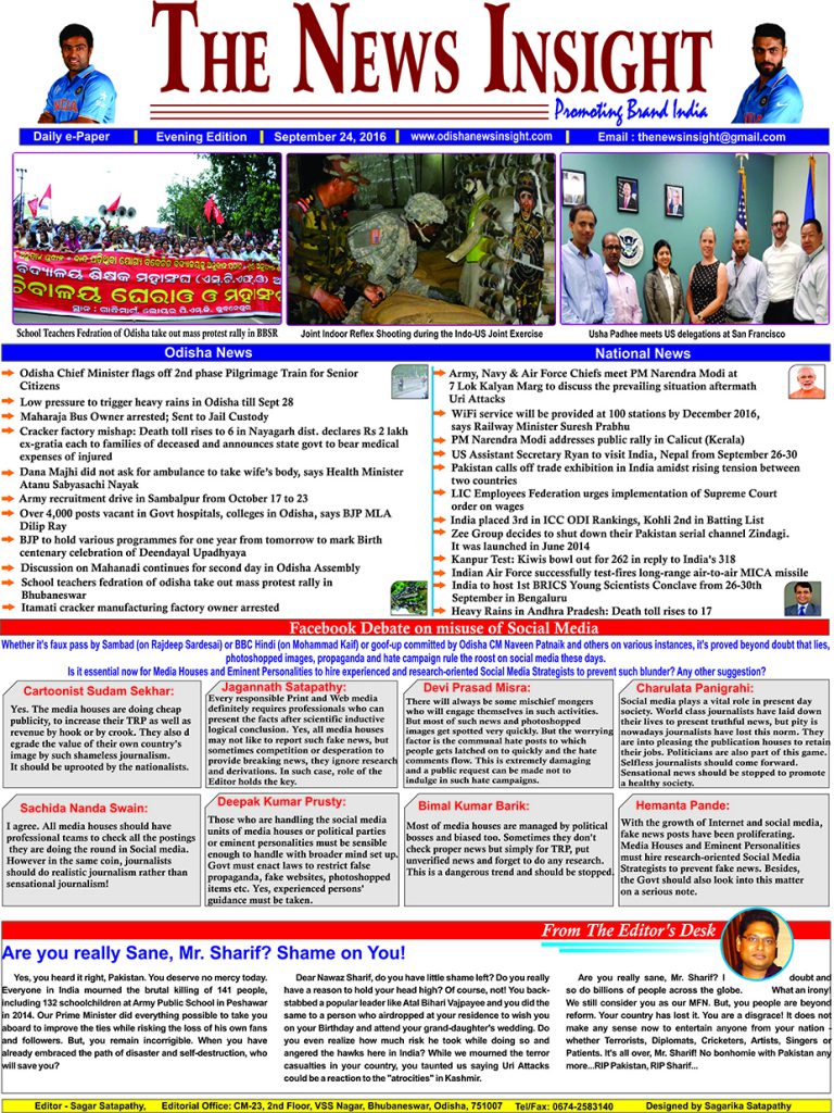 Insight Daily e-Paper, September 24, 2016 e-Paper By Odisha News Insight On Sep 24, 2016 4,636 Breaking NewsCurrent AffairsDaily e-PaperIndia News 4,636 Share FacebookTwitterWhatsApp