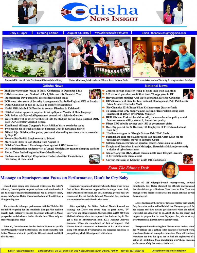 Odisha News Insight (Daily e-Paper) – August 13, 2016 e-Paper By Odisha News Insight On Aug 13, 2016 897 Breaking NewsCurrent AffairsDaily e-PaperIndia News 897 Share FacebookTwitterWhatsApp