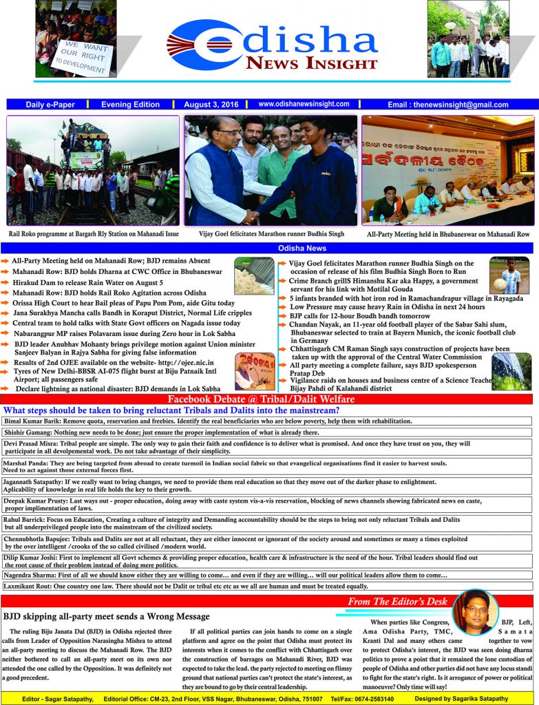 Odisha News Insight (Daily e-Paper) – August 3, 2016 e-Paper By Odisha News Insight On Aug 3, 2016 906 Breaking NewsCurrent AffairsDaily e-PaperIndia News 906 Share FacebookTwitterWhatsApp