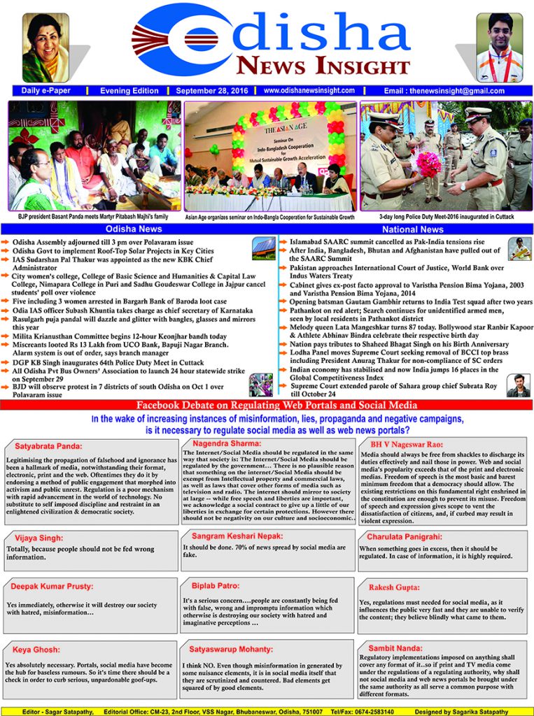 ONI Daily e-Paper – September 28, 2016 e-Paper By Odisha News Insight Last updated Sep 28, 2016 4,713 Breaking NewsCurrent AffairsDaily e-PaperIndia News 4,713 Share FacebookTwitterWhatsApp