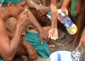 * Tamil Nadu farmers drink urine protesting over drought relief funds and waiver of farmers’ loans at Delhi’s Jantar Mantar.