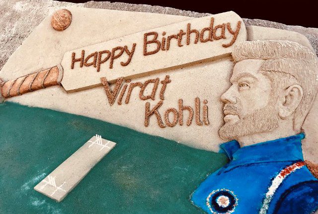 — Sudarsan Pattnaik creates sand art on Virat Kohli on his birth day today.