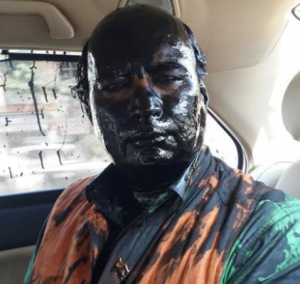 Some alleged Shiv Sena activists, who are opposed to a book release event by former Pakistan Foreign Minister in Mumbai throw black inks and paints at former BJP leader Sudheendra Kulkarni, who is organising the event.