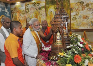 After offering prayers, Modi circumambulated the Mahabodhi tree under which Lord Buddha is said to have attained enlightenment 2,550 years ago. Modi was received by Bihar Governor Ram Nath Kovind and Food Minister Minister Shyam Razak at Gaya airport.