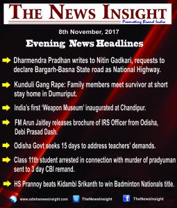 Evening News Headlines (November 8, 2017) News Bulletin By Odisha News Insight On Nov 8, 2017 672 Evening NewsIndiaNews HeadlinesOdisha 672 Share FacebookTwitterWhatsApp