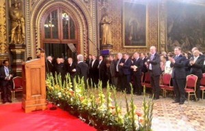 Dressed in a bandhgala, Modi received a standing ovation and thunderous applause at the end of his speech which was heard with rapt attention.