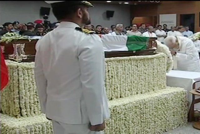 Former Prime Minister Atal Bihari Vajpayee’s mortal remains, wrapped in the tricolour, have been brought to BJP Headquarters in New Delhi on Friday for the people to pay their last respects to the departed leader. Prime Minister Narendra Modi and BJP president Amit Shah paid last respects to Vajpayee ji.