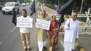 On the 23rd day of Bhasha Andolan yesterday, Leader of Utkal Sammelan, Odisha Secondary School Teachers’ Association (OSSTA), Abhay Samantray (82), renowned Odia Language Activist, Krushna Chandra Jagdev, Retd. Reader in Political Science, Gitarani Kanungo and young talent Subhas Chandra Pradhan join the ‘silent black flag march’.