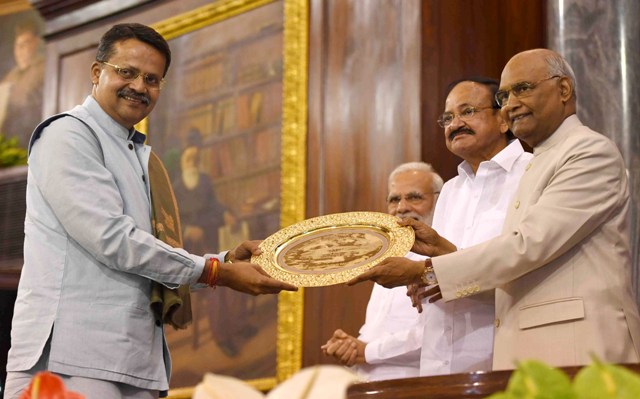 ONI Bureau: BJD MP Bhartruhari Mahtab received ‘Best Parliamentarian Award’ for 2017 from President of India Ram Nath Kovind at the Central Hall of Parliament today. He became the first Odia Parliamentarian to receive the award.