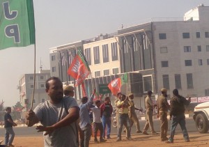 Some BJP activists were taken into custody by cops while they were trying to ransack city buses at Master Canteen.