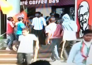 BJP workers vandalised KFC Outlet at Ram Mandir Square in Bhubaneswar today during the 12-hour Bhubaneswar bandh called by BJP over the sex clip allegedly features the BMC Mayor and his possible role in the death of an engineering student, Rishi.