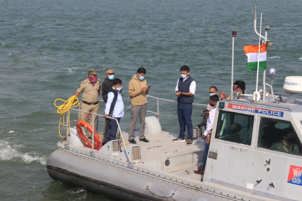 The officials travelled to the proposed site on a Paradip Port Trust vessel along with PPT Chairman, Rinkesh Roy.