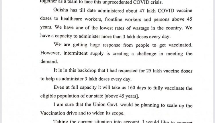 In his letter, Patnaik has requested the Centre to scale up the vaccination drive.