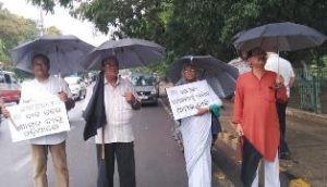 On the 37th day of Bhasha Andolan yesterday, daughter of Former Chief Minister Nabakrushna Choudhury & Social Worker Krishna Mohanty, Late Choudhury’s grandson Nachiketa Desai, Journalist Arun Kumar Panda and Social Worker Tapan Swain joined the ‘silent black flag march’.