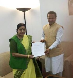 Balasore MP Rabindra Kumar Jena met External Affairs Minister Sushma Swaraj and requested her to declare the Biju Patnaik International Airport in Bhubaneswar as the embarkment points for the Haj pilgrims of Odisha.