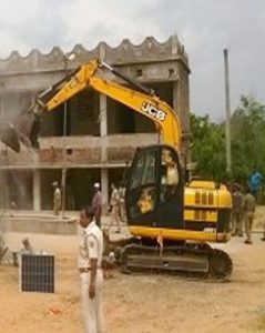 The demolition drive is being carried in the presence of Puri Deputy Collector, Additional SP, three DSPs and senior officials of the Forest Department.