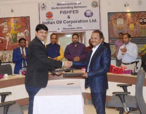 The MoU is signed by Subal Chandra Mohanty, Managing Director, FISHFED and Ashok Mishra, Chief Divisional Consumer Sales Manager, IOCL in the presence of Minister of Agriculture & Farmer Pradeep Maharathy.