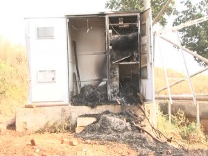 Koraput, Dec 22: Maoists set another mobile tower on fire on Sunday night in Odisha’s Koraput district. This is the second such incident in two days reported in the district. Villagers in the district are in panic following the activities of Maoists and some villagers left their villages.