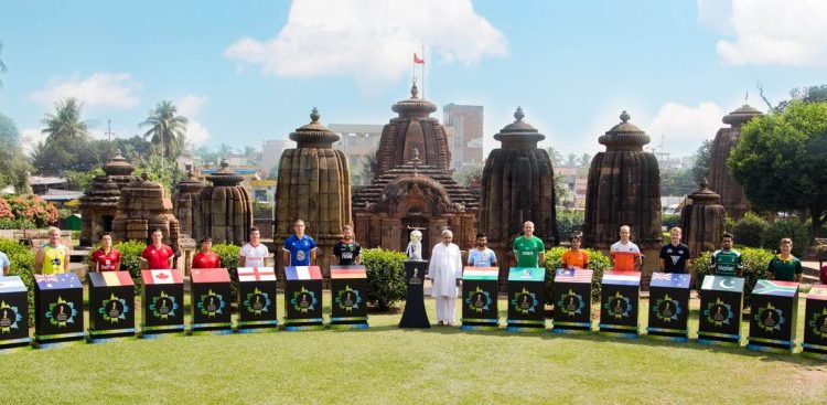—   Team Captains along with Odisha CM pose with the coveted World Cup Trophy in Bhubaneswar today.