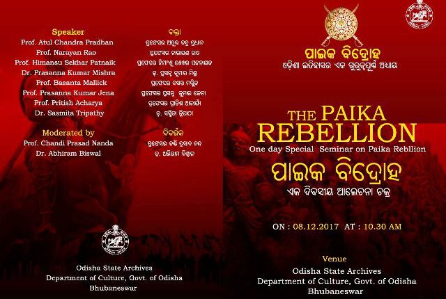ONI Bureau: One day Paika Bidroha Seminar along with documentary Film Show and Archival Exhibition to be held at 10.30 AM in State Archives, Bhubaneswar on Friday.