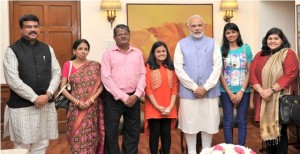 Prime Minister Narendra Modi greeted Indian Idol Junior-2015 winner Ananya Sritam Nanda at his office in New Delhi today. He gave his best wishes to Ananya and hailed her strong determination, hard work and will power.