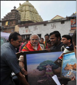 During Modi’s visit to the Jagannath temple in Puri on Sunday, Pattnaik presented him a photo of a sand sculpture of Lord Jagannath created by him.