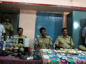 Rayagada, Dec 31: District police has been able to bust a dreaded dacoit gang on Thursday. Acting on a tip-off Rayagada police caught the dacoit gang red handed and recovered house breaking instruments, liquor, lethal weapons like swords and knives, cash amounting Rs. 6575, torch lights, etc.