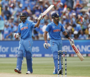 Opting to bat first, India lost an early wicket when Rohit Sharma (6) was run out in the third over, but soon after it became the Dhawan and Kohli show.