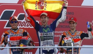 Madrid, Nov 9: Jorge Lorenzo was crowned as the world champion for the third time in his career in MotoGP after winning the Valencia MotoGP at the Cheste Racing circuit in Valencia.