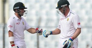 Opener Dean Elgar (10) and skipper Hashim Amla (2) were batting at the crease at stumps with the visitors chasing a target of 310 runs to level the four-match Test series. South Africa earlier bowled India out for 173 in the second innings. (IANS)