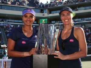 India’s ace Tennis star Sania Mirza and Swiss legend Martina Hingis have won the women’s doubles trophy of the Indian Wells Open tennis tournament at Californi, USA. They beat the duo of Ekaterina Makarova and Elena Vesnina 6-3, 6-4 in the title clash.