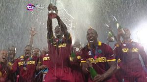 The match went to the last over. West Indies needed 19 runs off 6 balls. They had lost six wickets and top scorer Marlon Samuels was at the non-striker end. It was expected that Carlos Brathwaite would take a single to give Samuels strike. England smelled victory. But, Brathwaite hit four sixes in a row to take the game away from England.