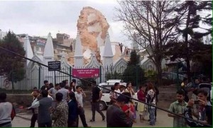 The Dharahara, a nine-storeyed 19th-century tower, collapsed here after a huge earthquake shook Nepal and caused widespread devastation on Saturday, a media report said. Hundreds of people are reportedly trapped in the debris, a posting on Twitter said.