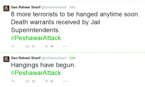After lifting ban on death penalty against the terrorists in Pakistan, the Army ordered the execution of 10 dreaded militants. Two of them were hanged in Faisalabad last night. Eight more will be hanged soon, as per the tweet of Pakistan Army Chief General Raheel Sharif.