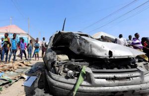 The car was driven by a suicide bomber said Ahmed Abdulle Afrax, the mayor of Wadajir district where the bombing happened.